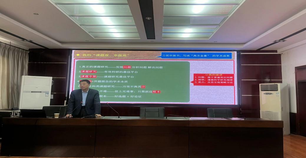 课题观决定课题研究之高度,杨润勇表示选题必须先定问题,问题是课题研究的逻辑起点,是研究的本质所在,是万变不离其宗的研究秘诀。树立起正确的课题观后,杨润勇认为申报观是做好有效研究的第二步,他分享了课题申报的关键词和秘诀,表明关键词是把握申报成功的根本。