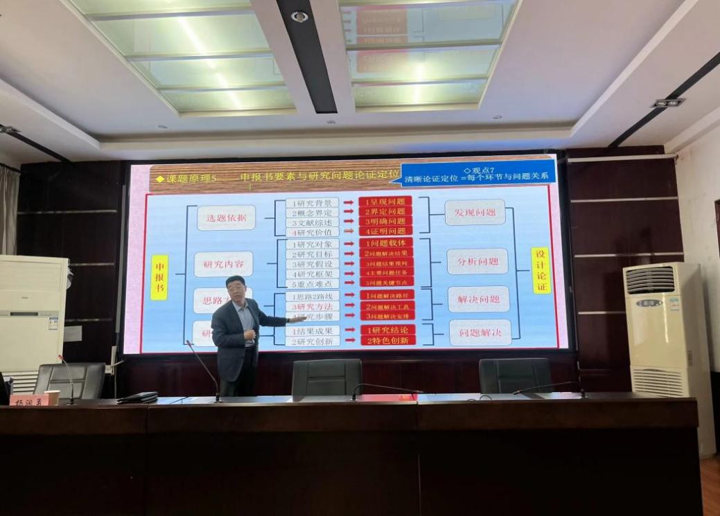 讲座中杨润勇重点说明了56个课题研究原理,表明真正的研究源于普遍突出的问题,研究的问题类型决定标题类型,必须以高颜值标题定好研究问题,并提出“无好问题,无好标题;有好问题,需凝练成好标题”的观点。另外要遵循科学研究规律进而反思呈现策略方法,说明好方法才能解决好问题,把研究方法设计出特色,设计出亮点,抓住课题核心点进行设计、论证和解析。最后,要清晰论证定位,即每个环节都要与问题环环相扣。